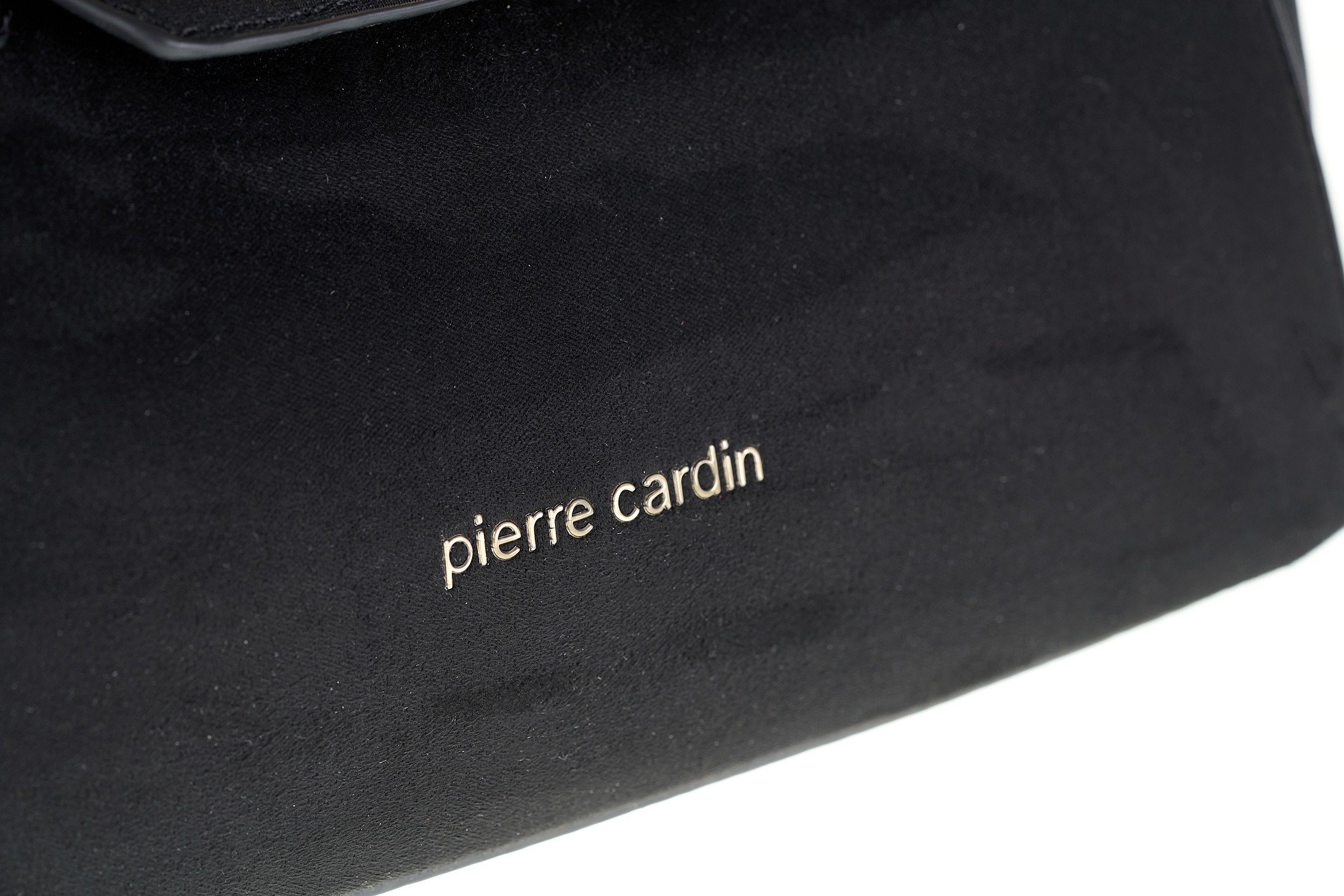 Pierre Cardin small shoulder bag, crafted from black fabric faux leather with a velvet-effect suede front panel. This bag has a sophisticated design with a gold twist lock, double rigid handles and the addition of a shoulder strap for added convenience.
